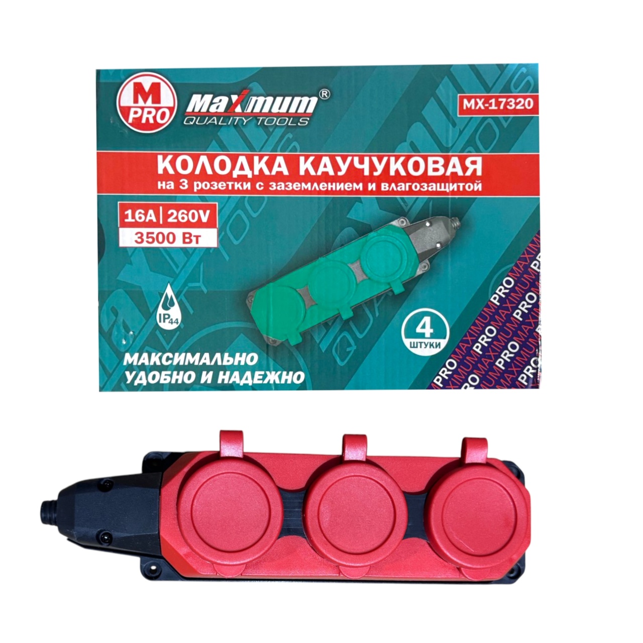 Переносная розеточная колодка от "Maximum" предназначена для безопасной работы электроинструмента и оборудования во влажных, пыльных условиях и на улице.