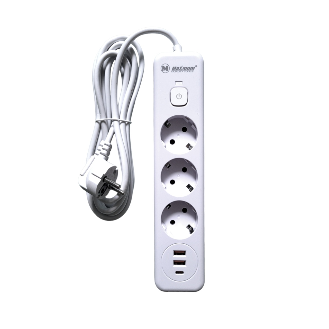 Удлинитель с заземлением 2 м, плоский, 3 розетки EU_UK_US, 5 USB портов,Type C,T05, "MAXIMUM" MX 148