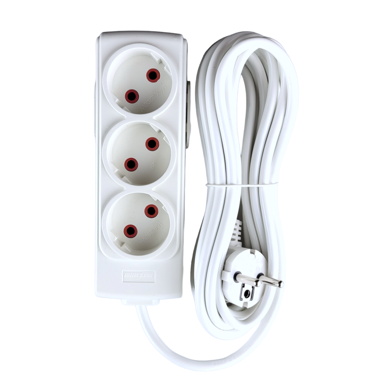 Модель с тремя точками подключения подходит для любого внутреннего помещения и позволяет одновременно подсоединять сразу несколько электрических устройств.