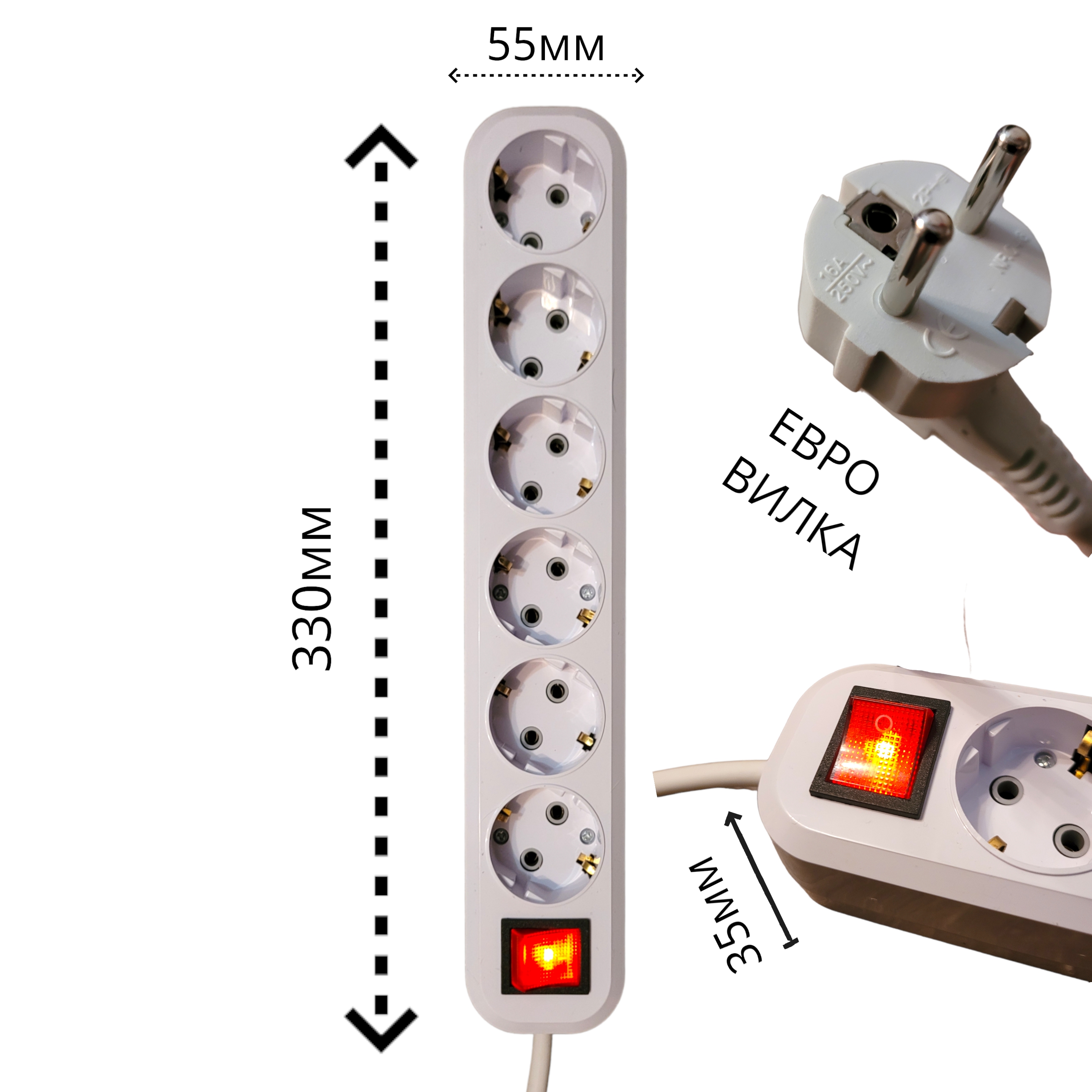 Сетевой фильтр 5 метров от "MAXIMUM QUALITY TOOLS" создан с 6 розетками и евровилкой. Корпус выполнен из белого негорючего АБС-пластика и подходит для использования только внутри помещений-степень влагозащиты IP 20. Розетки с заземлением расположены под углом 45 градусов.