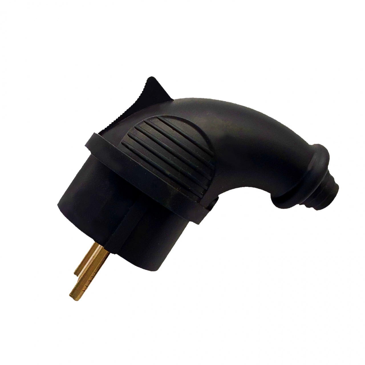 Электрическая угловая вилка с заземлением выполнена из каучука и предназначена бля бытовых приборов. Изделие обладает высокой термостойкостью и невосприимчивостью к ультрафиолету. Угловая вилка с заземлением - электротехнический элемент для сбора удлинителя или ремонта любого бытового электроприбора. Угловая конструкция очень удобна в применении, особенно при подключении к стационарной розетке в местах с ограниченным пространством.