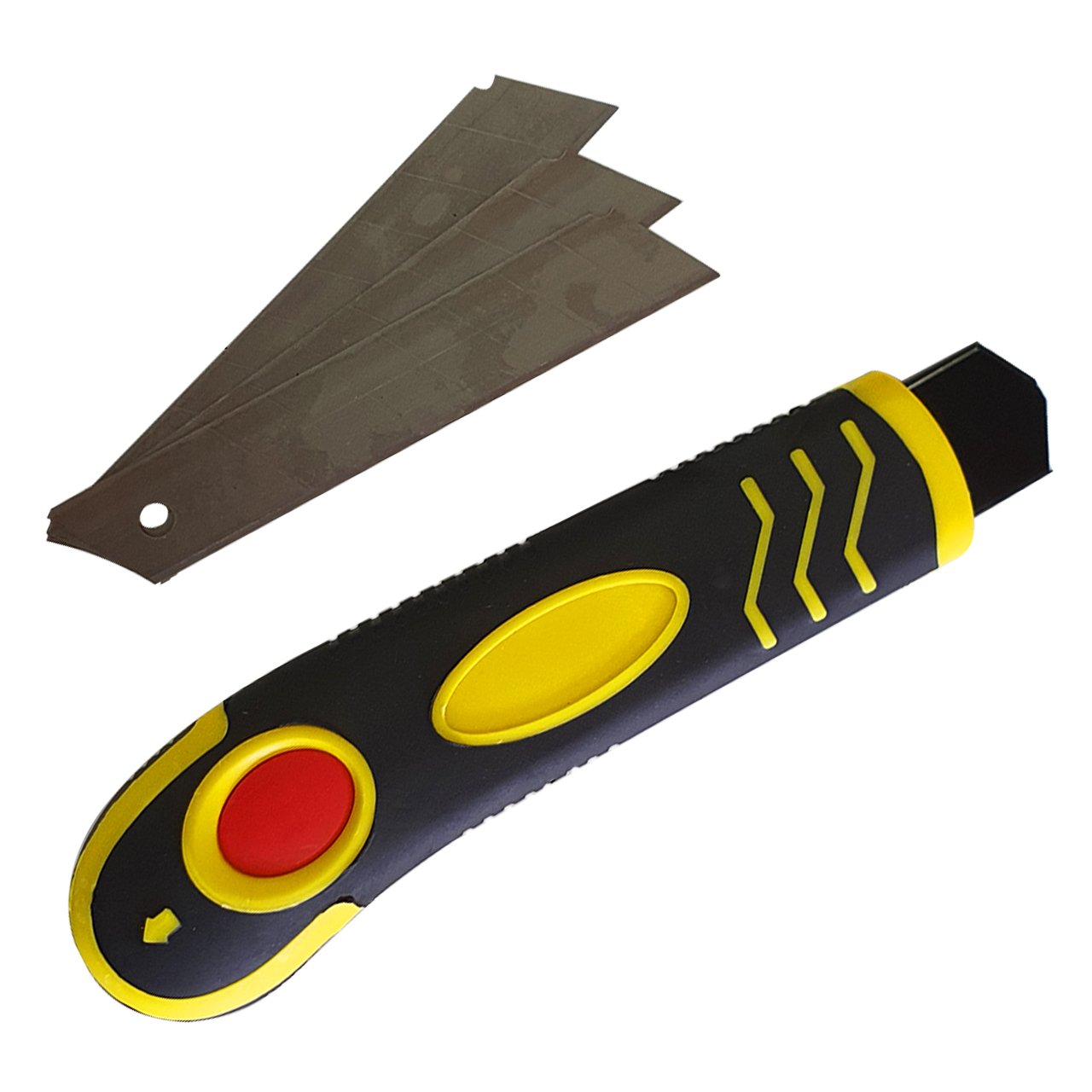 Канцелярский нож комплектуется тремя запасными лезвиями.