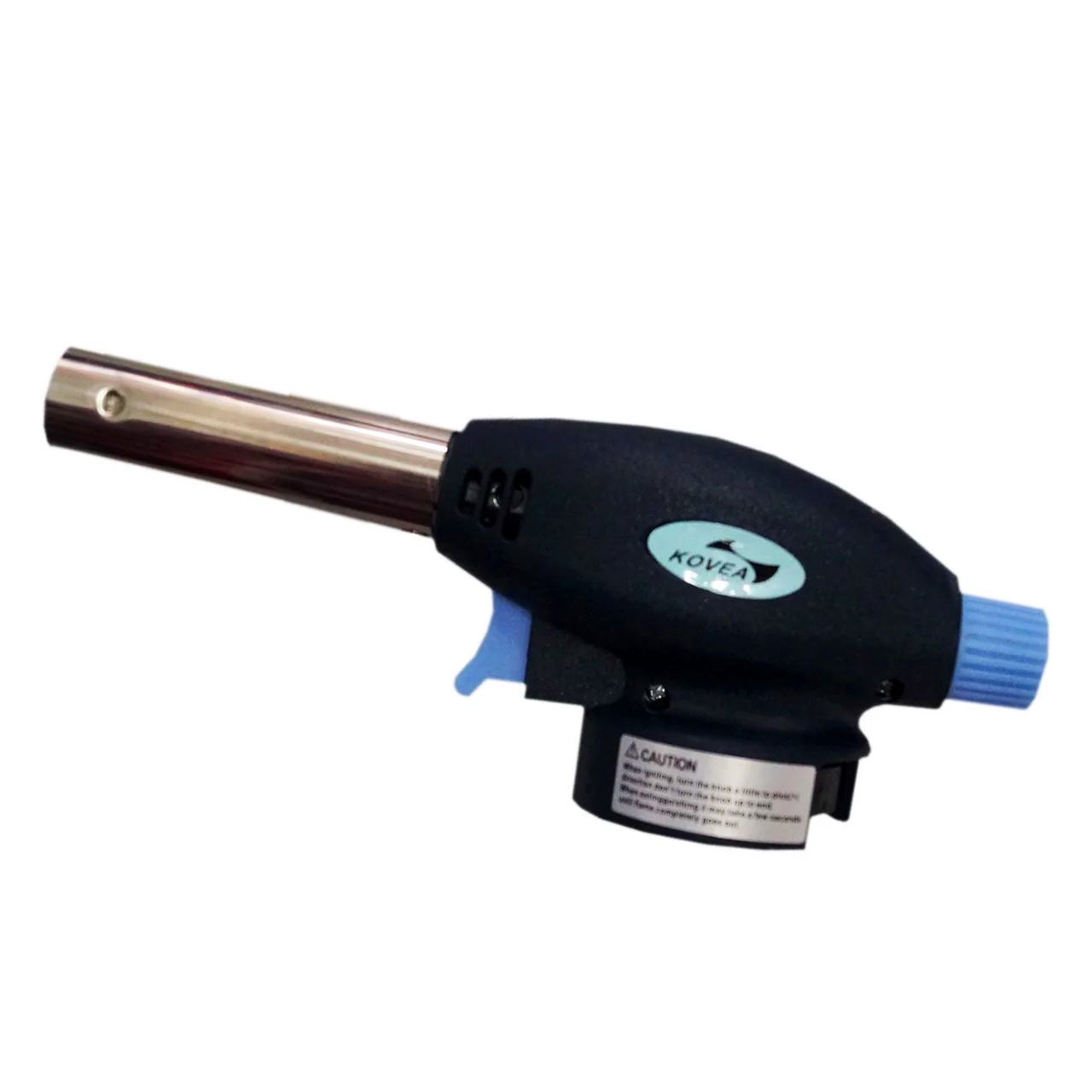 Поджиг осуществляется пьезоэлементом при нажатии курка. Металлическое сопло дает возможность нагревать предметы в труднодоступных местах. Горелка газовая позволет регулировать уровнь пламени.