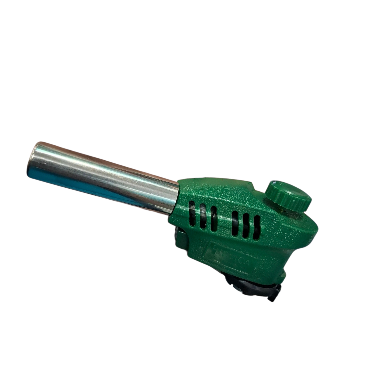 Горелка оснащена пьезоподжигом и вентилем тонкой регулировки пламени. Для работы потребуется балонн на основе газа пропан/бутан.