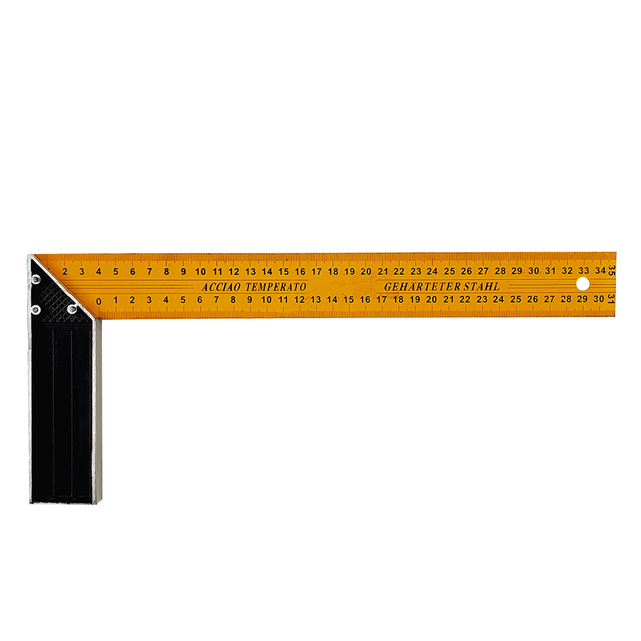 Алюминиевый угольник 350 мм с 2-х сторонней крашеной сантиметровой шкалой. Угольник используется для разметочных или поверочных операций при выполнении строительных, столярных или слесарных работ.