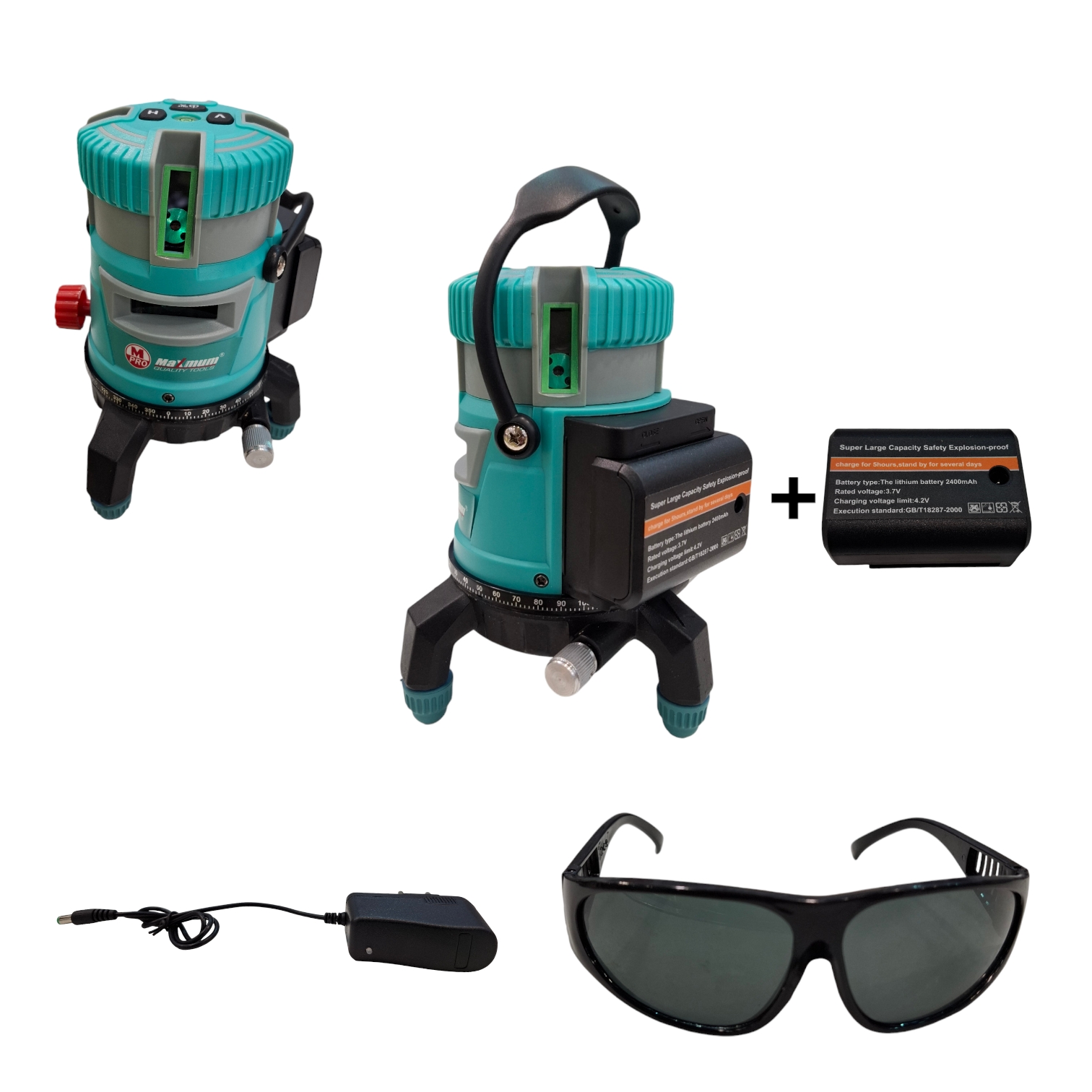 Лазерный уровень 360 градусов от Maximum Quality Tools — это прибор на основе диодов с пятью лучами зеленого цвета. Удобная функция самовыравнивания за счет встроенного автоматического маятникового компенсатора. Нивелир используется для построения горизонтальной и вертикальной линии, лазерного креста и точки отвеса. Лучи хорошо видно в диапазоне 10 метров.