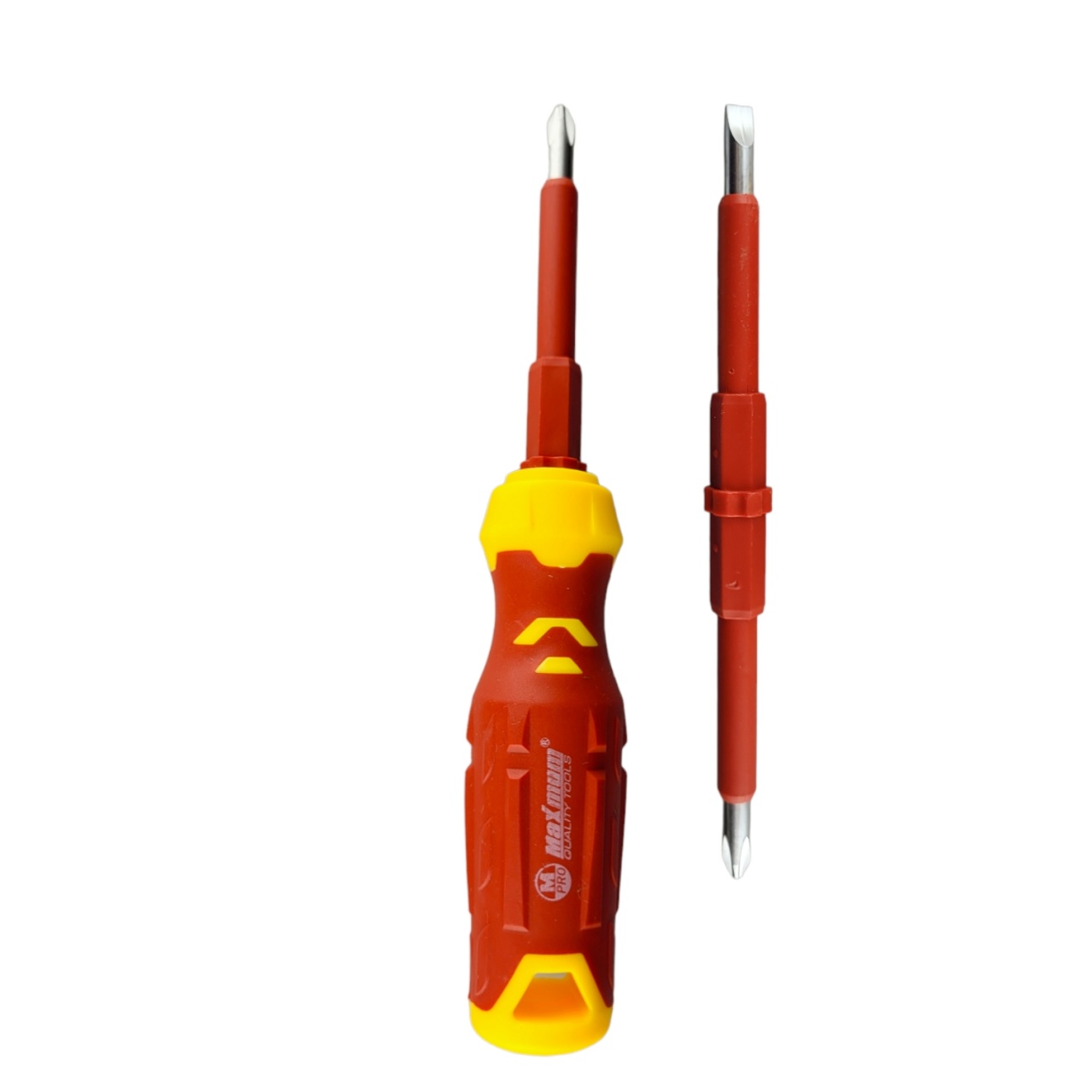 Отвертка диэлектрическая двухстороняя от «Maximum Quality Tools» имеет рабочий шлиц PH2xSL6x80 мм. Диэлектрическая отвертка имеет рельефную рукоять, которая прочно соединена со стержнем, что позволяет работать с большим усилием. Диэлектрическое покрытие делает безопасной работу в бытовых электросетях до 1000 В. Износостойкость отвертки обеспечивается прочным стержнем из хром-ванадиевой стали.