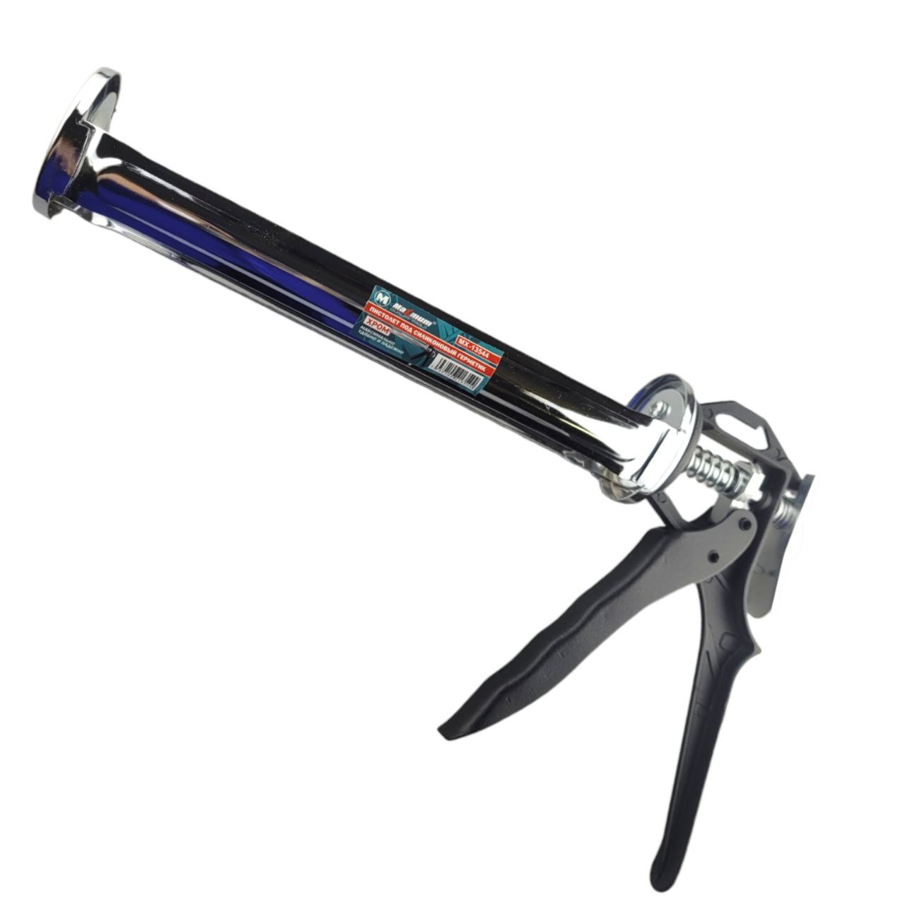 Полузакрытый пистолет для герметика до 310 мл. от «Maximum Quality Tools» создан с металлическим хромированным цилиндрическим отсеком и круглым гладким штоком, который обеспечивает точное нанесение необходимого количества смеси. Общая длина инструмента 240 мм, диаметр стального штока у основания 50 мм. Механический пистолет под герметик используется с герметиком низкой и средней вязкости. Полузакрытая конструкция позволяет работать с герметиками без упаковки.