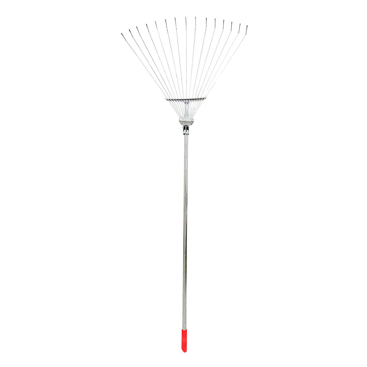 Грабли садовые веерного типа имеют регулируемую ширину рабочей части в диапазоне от 20 до 70 см. Веерные металлические грабли с черенком имеют 15 зубьев, общая длина инструмента 150 см. Грабли изготовлены из высокопрочного материала - пружинной нержавеющей стали.