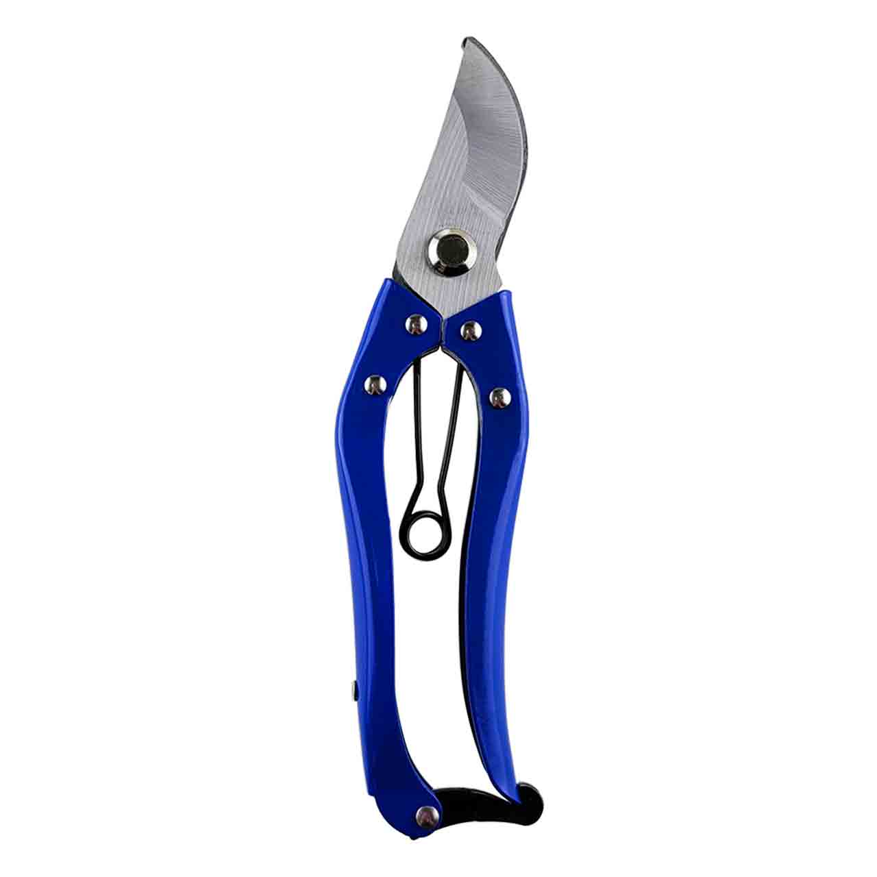 выполнен из прочной инструментальной стали с обливными нескользящими синими ПВХ рукоятками и оснащен возвратной пружиной. Секатор имеет максимальный диаметр реза 20 мм и используется для ухода за декоративными кустами, среза цветов, обрезки молодых веток и побегов. Острые стальные лезвия обеспечивают ровные и аккуратные срезы. Специальная форма рукояток улучшает хват и препятствует выскальзыванию.