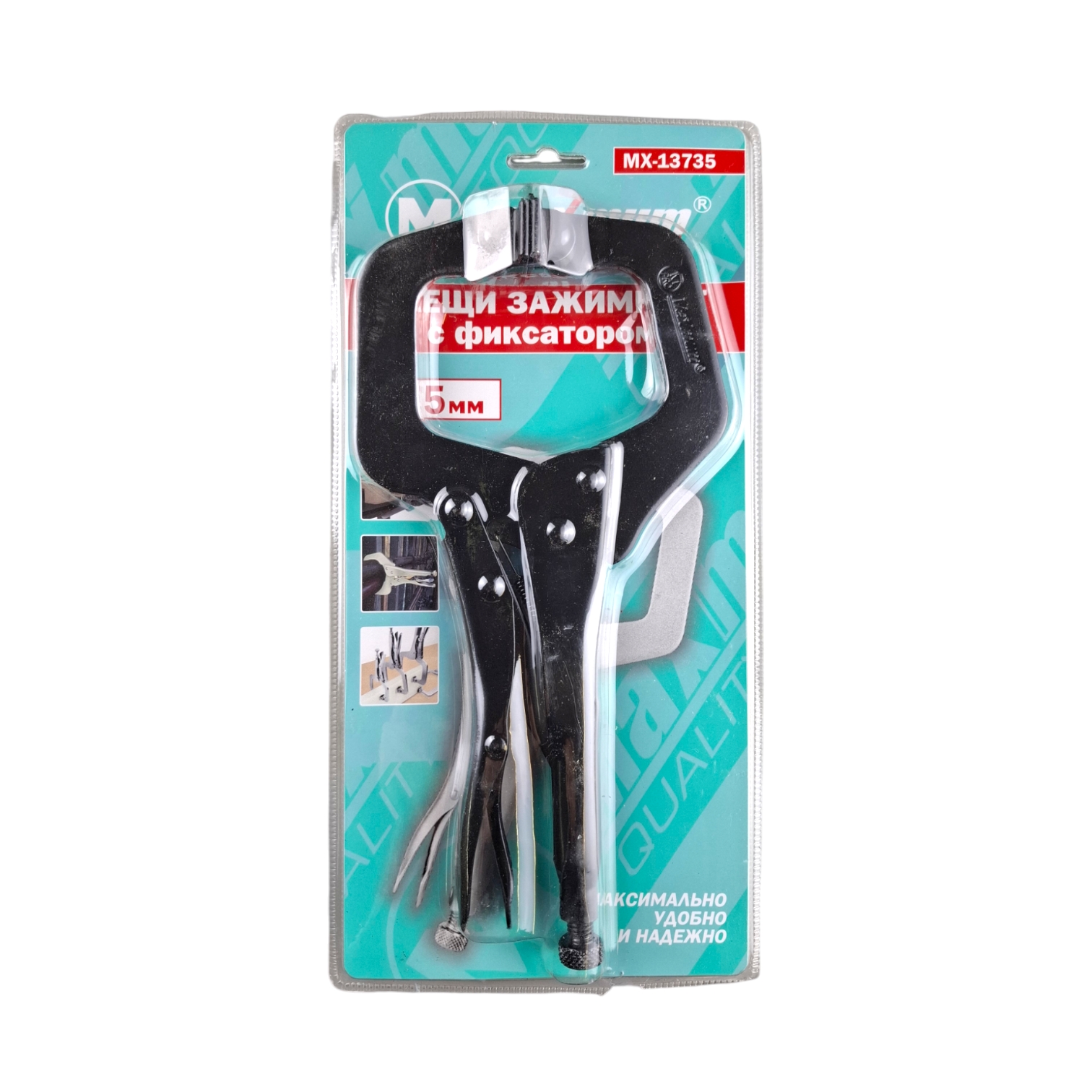 Мощные зажимные клещи длиной 280 мм с фиксатором и подвижными губками. Идеальный помощник для сварки, столярных и слесарных работ, обеспечивающий надежную фиксацию деталей сложной формы.