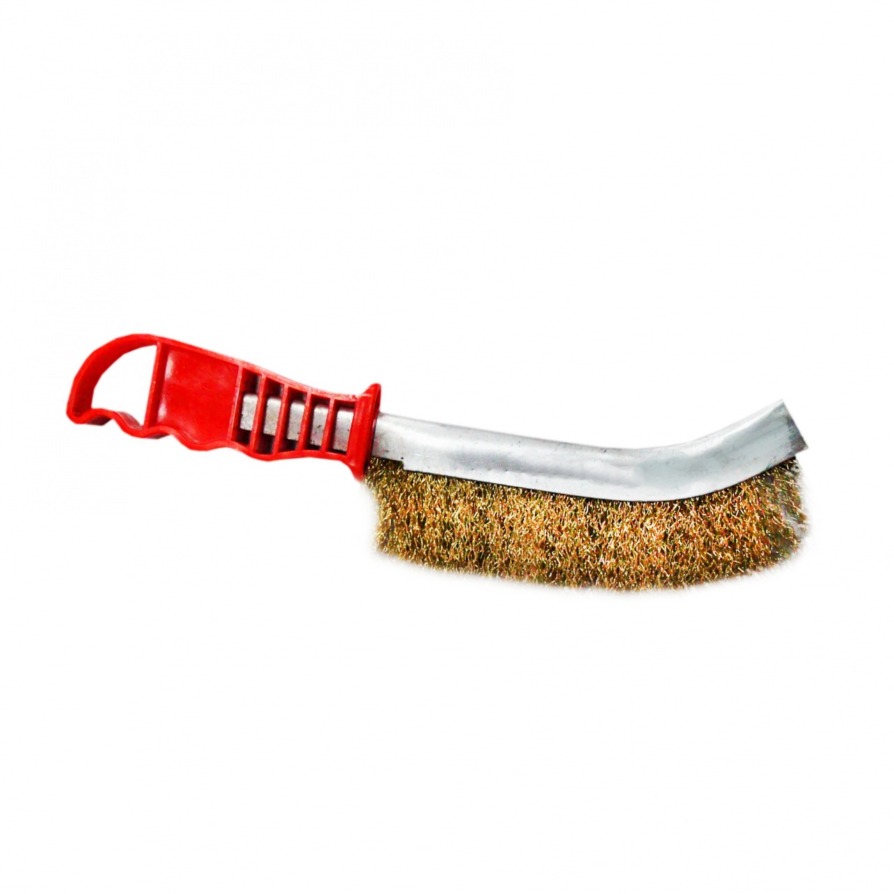 Латунная щетка по металлу с пластмассовой ручкой предназначена для снятия старой краски, налета и ржавчины. Это компактное, практичное средство для быстрой и грубой обработки мелких металлических предметов, их очистки от шлаков и подготовке к полировке. Высота металлического ворса 30 мм.
