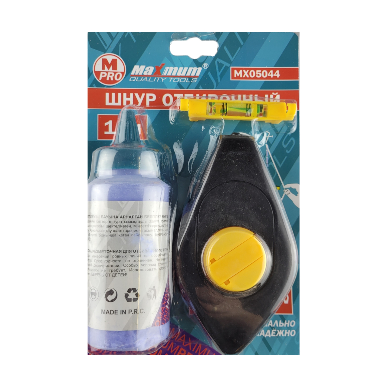 Состав набора: разметочный шнур длиной 10 м, помещенный в ударопрочный пластиковый корпус эргономичной формы с устройством быстрой смотки. Конец шнура оснащен специальной пластинкой с зацепами, облегчающей проведение разметки. Красящий порошок в удобном флаконе массой 115 г. Засыпается внутрь корпуса со смотанным шнуром по мере необходимости.Мини-уровень, крепящийся на шнуре. Используется для точной разметки горизонтальных или вертикальных линий.