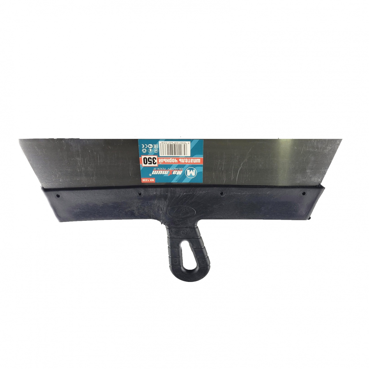 Шпатель фасадный 350 мм из нержавеющей пружинной стали от Maximum Quality Tools имеет полотно средней жесткости. Незаменимый инструмент при работе с различными строительными смесями на больших поверхностях. Полотно из анодированной стали высокой прочности обеспечивает надежность и долгий срок службы инструмента и предотвращает искривление полотна, а эргономичная рельефная пластиковая рукоятка снижает утомляемость, создавая комфорт при работе.