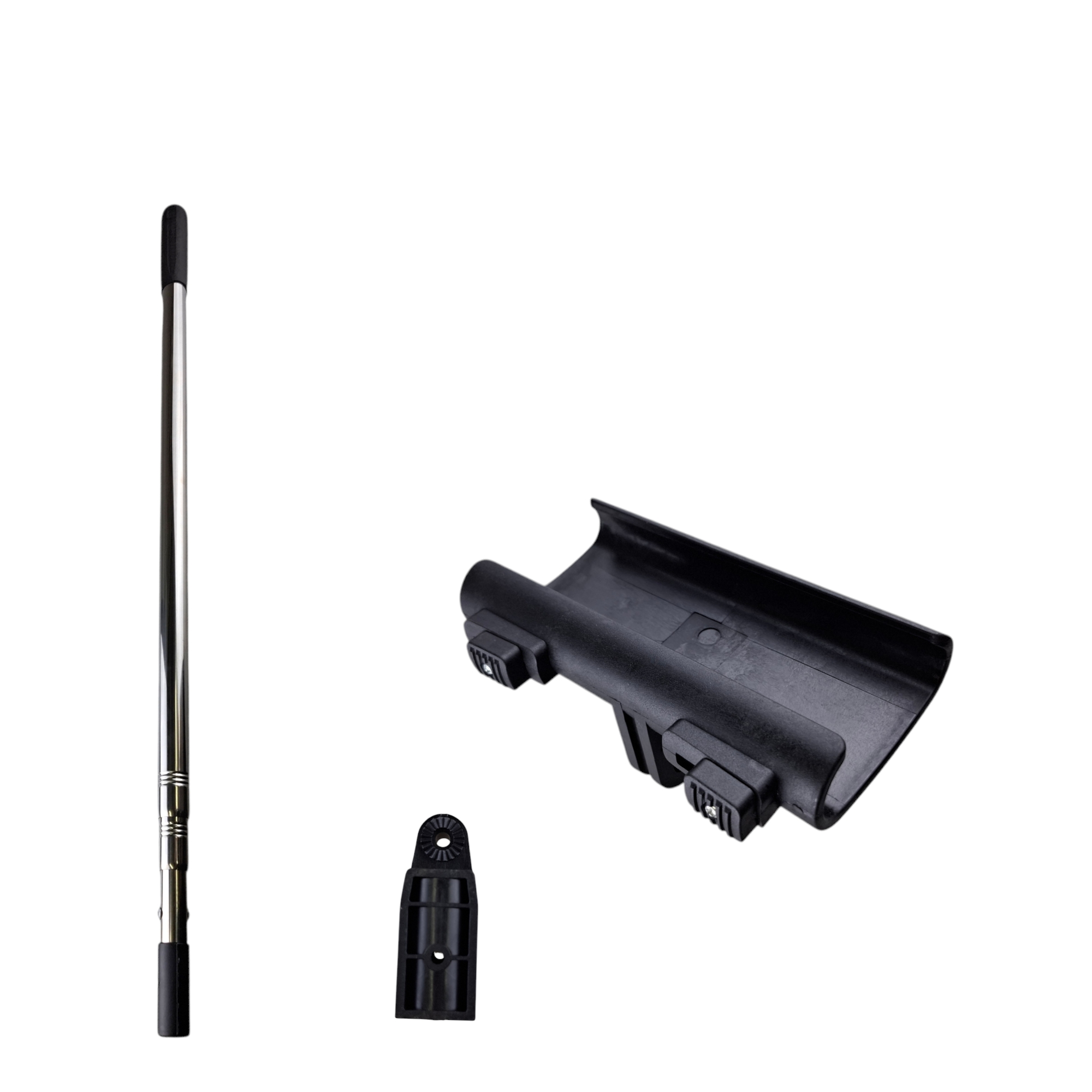 Прочный и гибкий инструмент дополнен телескопическим удлинителем и держателем.