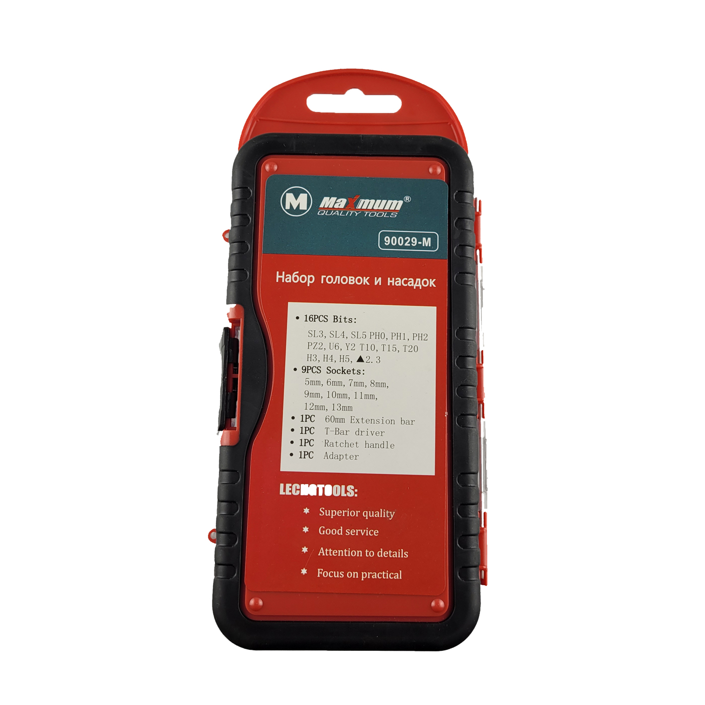 Набор головок и насадок с отверткой включает в себя 29 предметов от Maximum Quality Tools и применяется для сборки, ремонта, монтажа или демонтажа резьбовых соединений. Эргономичная двухкомпонентная рукоятка отвертки с реверсивным храповым механизмом обеспечивает надежный и комфортный захват. Биты из хромованадиевой стали обладают повышенной прочностью и долговечностью. Торцевые головки выполнены из высококачественной углеродистой стали.