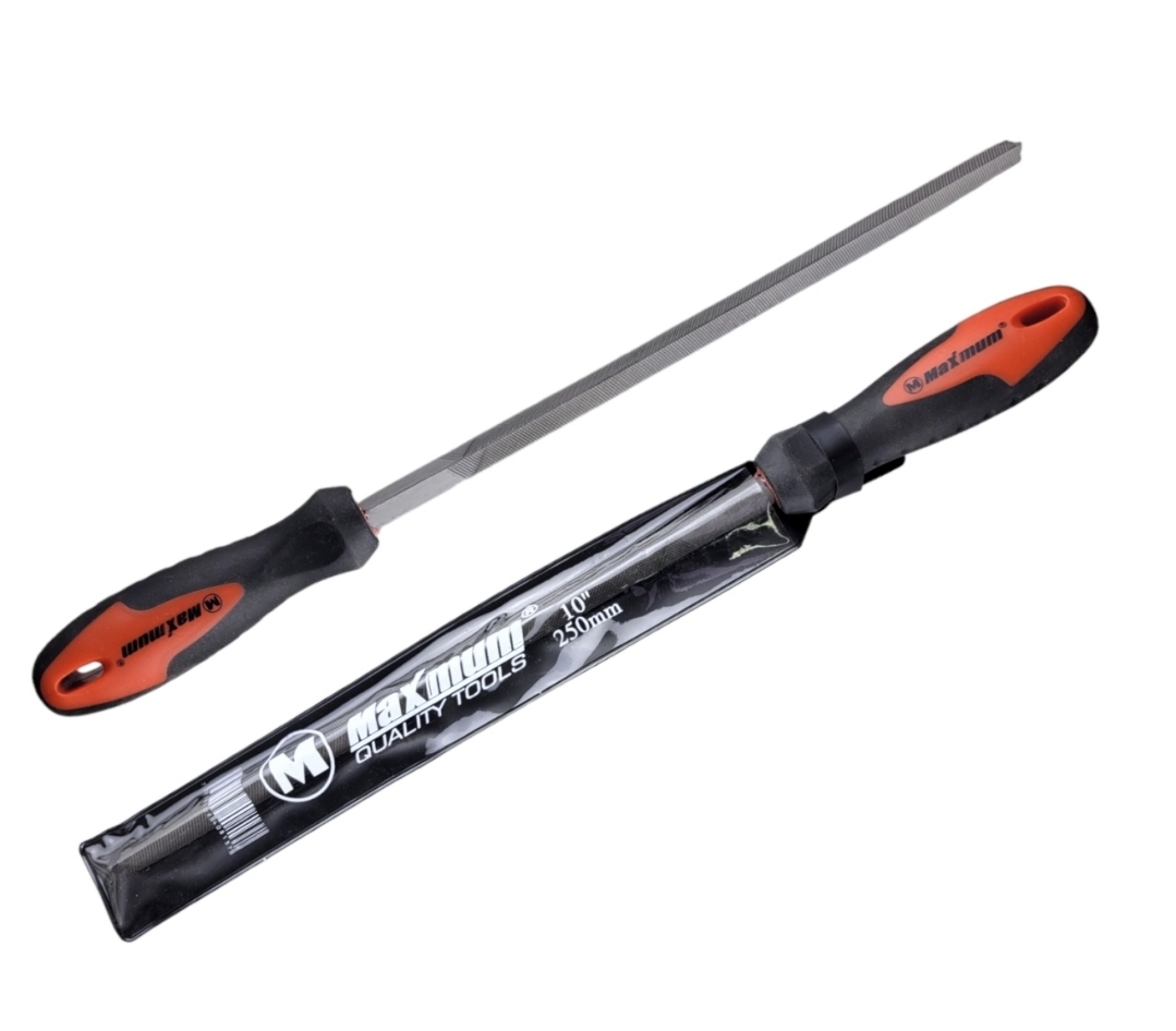 Полукруглая форма позволяет работать с вогнутыми поверхностями. Длина рабочей части — 250 мм. Инструментальная сталь сохраняет рисунок насечек длительное время.