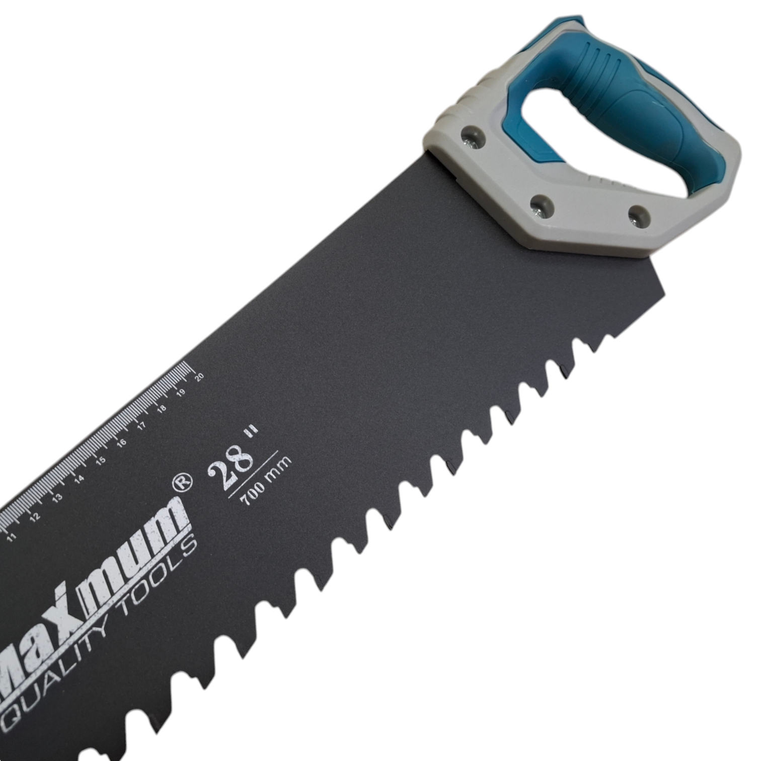 Ножовка по газобетону 700 мм "Maximum Quality Tools" используется при выполнении строительных или ремонтных работ. Пенобетон обладает достаточной прочностью и абразивностью, поэтому применять для его распиливания пилку по дереву не рационально, так как это приводит к скорейшему притуплению ее зубцов. Ножовка по пенобетону лишена такого свойства, так как ее зубья покрыты твердосплавными победитовыми напайками. Это позволяет не только продлить срок службы инструмента, но еще и облегчить процесс пиления материала. Данный инструмент применяется с целью доработки форм, получая тем самым пеноблоки необходимого размера. Для изготовления доборных блоков в монтажной подгонке, так как в ряду всегда требуется подрезать как минимум один блок.