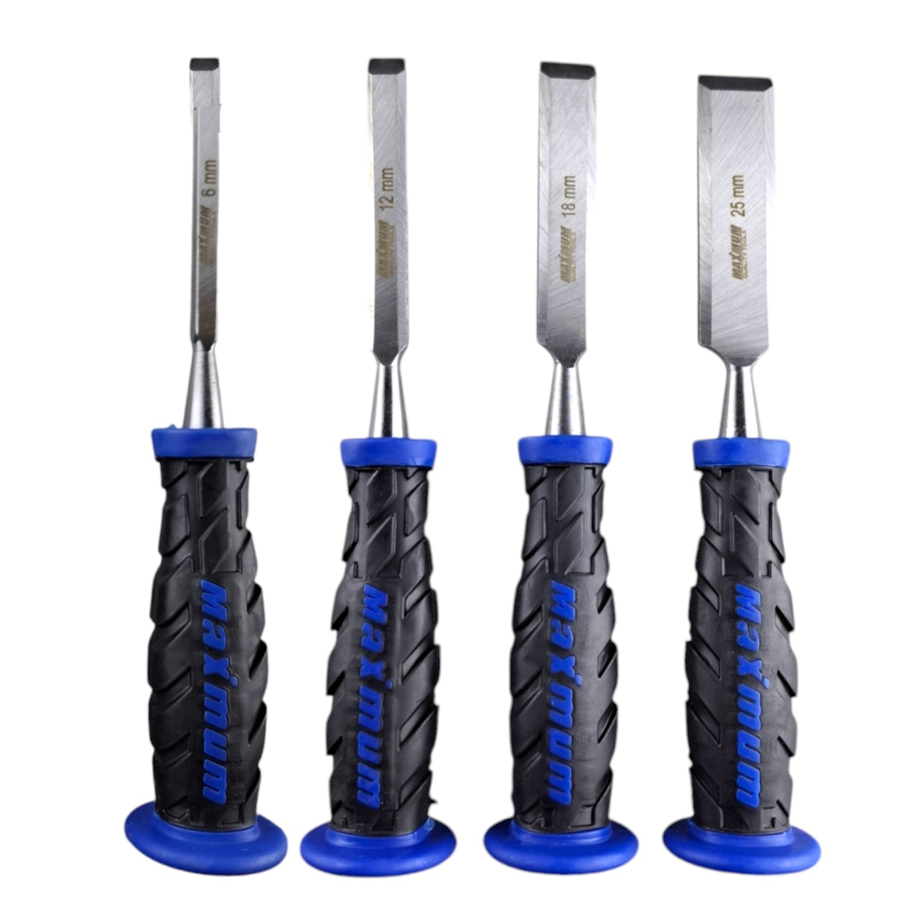 В комплект входят четыре стамески шириной 6, 12, 18 и 25 мм.