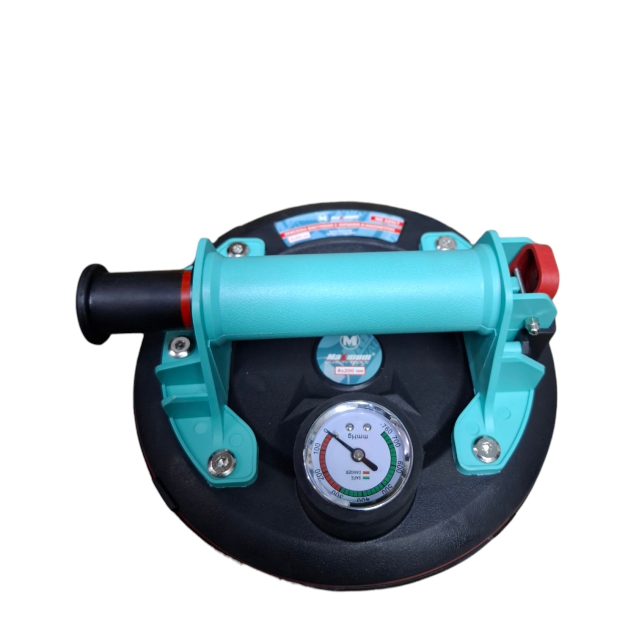 Вакуумная помповая присоска 200 мм от "MAXIMUM QUALITY TOOLS" оснащена удобным манометром и предназначена для гладкой плитки, стекла и других материалов. Грузоподъёмность до 80 кг. Вакуум создаётся благодаря ручному плунжерному насосу. Присоска-стеклодомкрат оснащена манометром и индикаторной линией - на ней имеется красная метка, которая предупреждает о снижении давления и необходимости подкачки. В комплекте есть защитная крышка и надежный пластиковый кейс для удобства хранения и транспортировки. Присоска с манометром предназначена для ручной переноски и укладки плитки, стекла и любых предметов с гладкой поверхностью (включая поверхности с небольшим рельефом). Высокая надёжность, достигается за счёт использования стеклодомкрата на чистой поверхности и визуального контроля за состоянием вакуума. Удобный поршень и противоскользящая рукоятка позволяют работать быстро и с высокой точностью.
