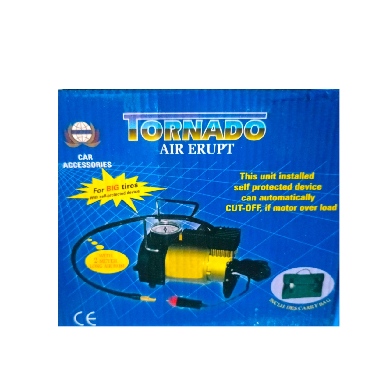 Автомобильный компрессор «Tornado» AС 580 35 л/мин с максимальным давлением 7 ATM поможет поддержать правильное давление в шинах, накачать игрушки и спортивное оборудование, а также использоваться для питания пневматических инструментов. Электрический компрессор можно подключить к прикуривателю автомобиля. Электрический компрессор с напряжением 12 V — это безмасляный поршневой компрессор который обеспечивает высокое давление и позволяет быстро и эффективно накачивать колеса. Медная обмотка и прорезиненная опора поможет прослужить вашему инструменту намного дольше. Комплектация включает металлический манометр, который показывает точное давление в шинах, шланг, а также дополнительные насадки для накачивания мячей, надувных матрасов и других предметов. Время непрерывной работы 15 минут.