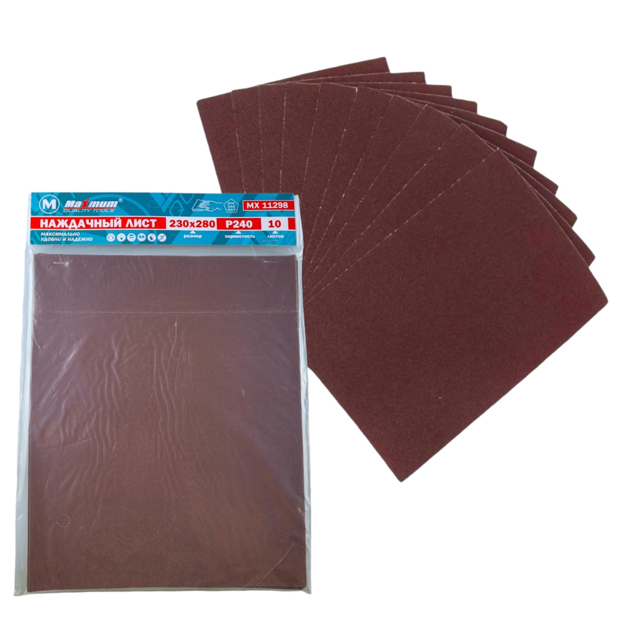 Бумага шлифовальная наждачная в листах P 240 230×280 мм от "Maximum QualityTools" эффективно снимает ржавчину, эмаль, налёт, застарелую грязь. Водостойкая пропитка бумаги и низкое растяжение основы при работе обеспечивает долгий срок службы и экономию универсальной наждачной шлифленты. Лента шлифовальная P 240 так же может использоваться для шлифования и начальной обработки пластмассовых изделий, полировки кожи, полировки механических компонентов, шлифовки мебели (в том числе дерева и лака), точной полировки инструментов и шлифования фурнитуры.