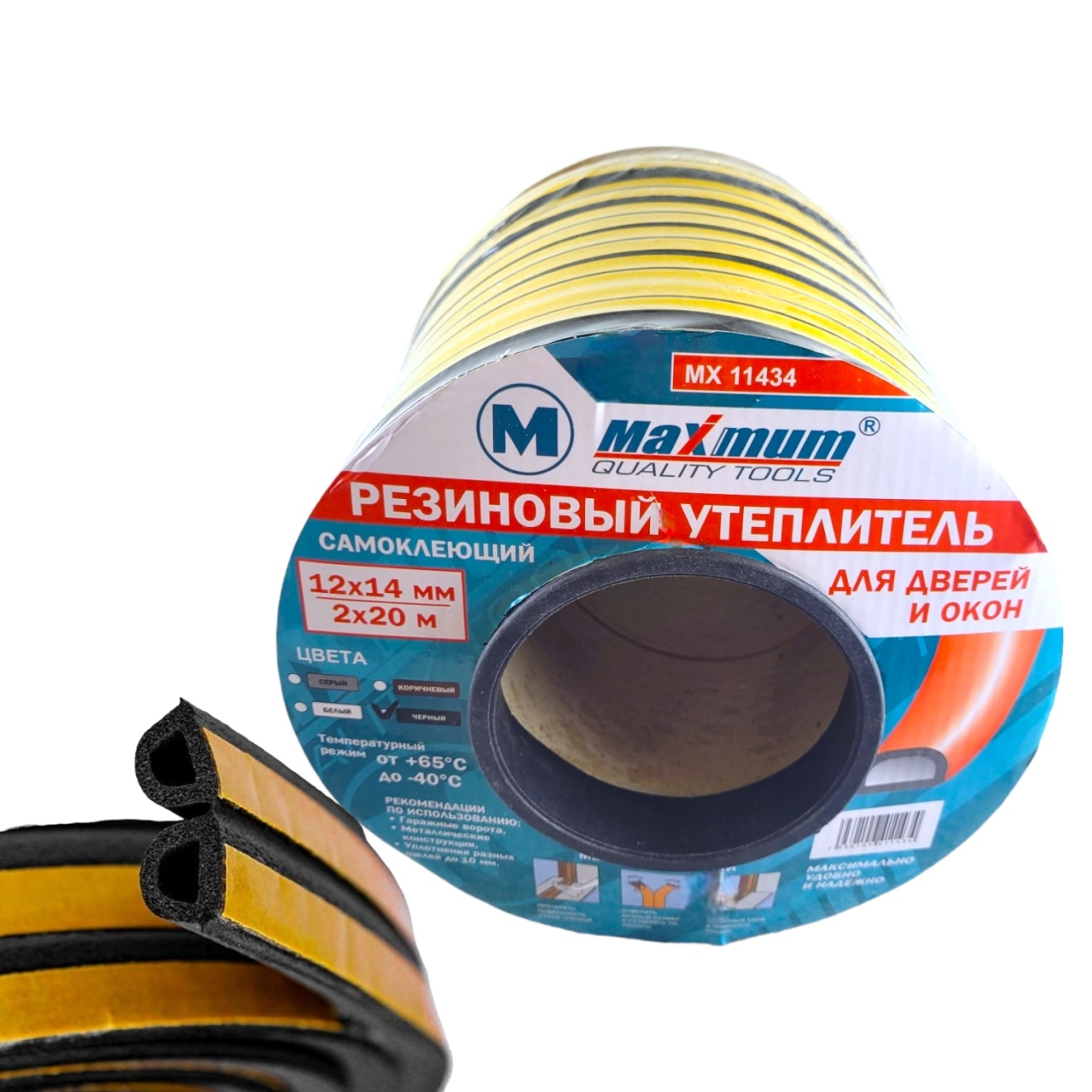 Уплотнитель резиновый самоклеящийся, сечение 14х12 мм, 40 м, профиль "D", черный, «Maximum» MX 11434