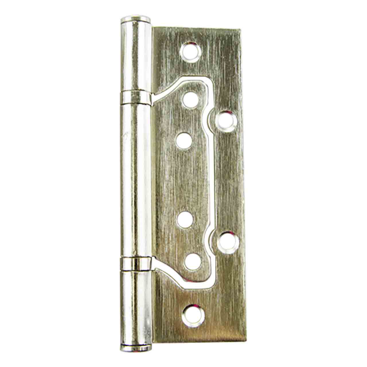 Петля универсальная без врезки цвета матовый хром с гальваническим покрытием устойчиво к коррозии. В универсальной дверной петле установлены втулка-подшипники и стальной стержень, что обеспечивает работоспособность 200 000 циклов открывания/закрывания.