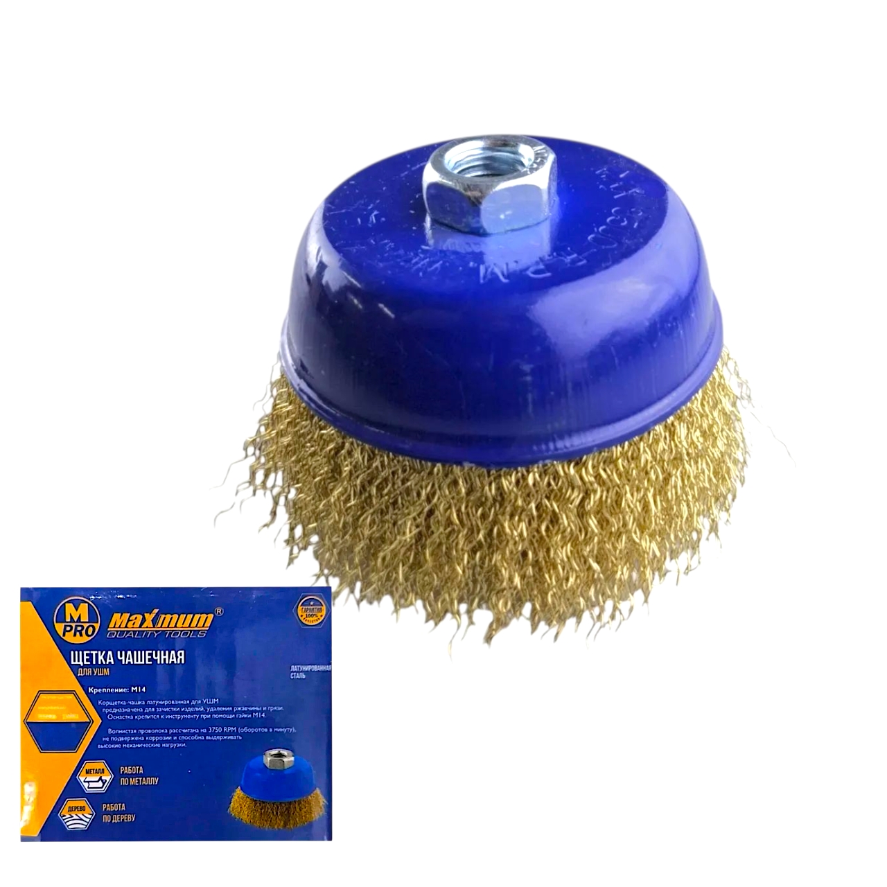 Профессиональная чашечная щетка диаметром 125 мм (5") от «MAXIMUM» — это мощный и эффективный инструмент для очистки, удаления ржавчины, зачистки сварных швов и подготовки поверхностей. Волнистая латунная проволока обеспечивает интенсивный, но бережный контакт, минимизируя риск глубоких царапин и искрообразования, что делает ее идеальной для работы с цветными металлами, нержавеющей сталью и деревом.