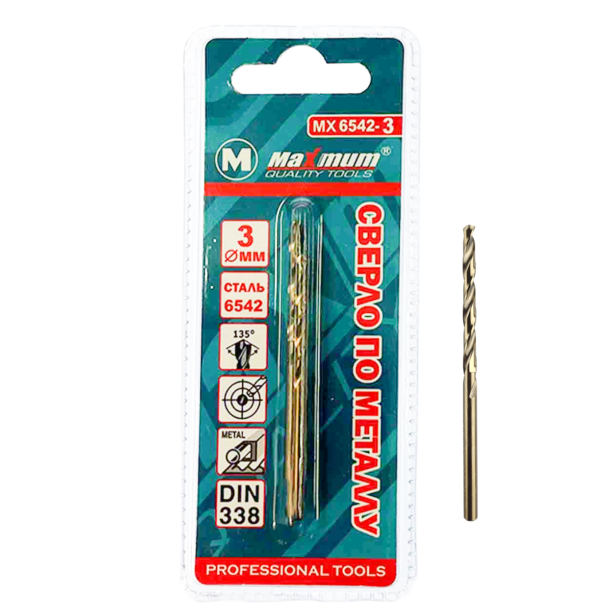 Сверло по металлу спиральное 3 мм от бренда Maximum с цилиндрическим хвостовиком создает сквозные и глухие отверстия в разнообразных металлических, деревянных и пластиковых изделиях.