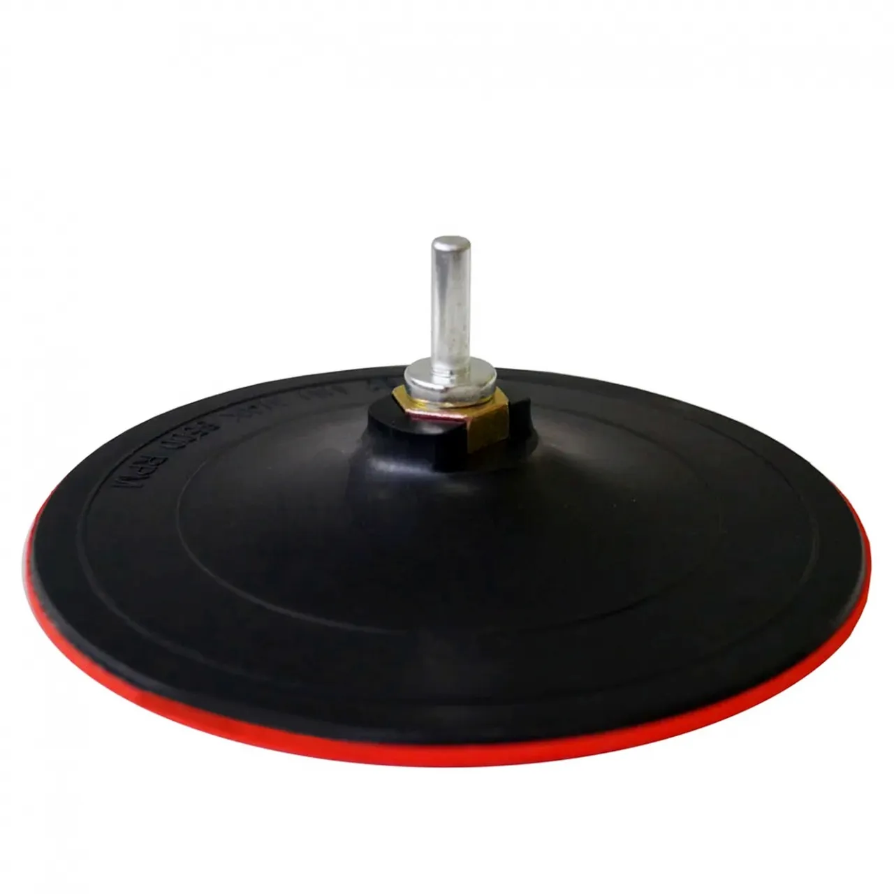 Опорная тарелка для дрели и болгарок на липучке имеет диаметр 180 мм и толщину мягкого подклада 3 мм, а также цилиндрический хвостовик в комплекте.