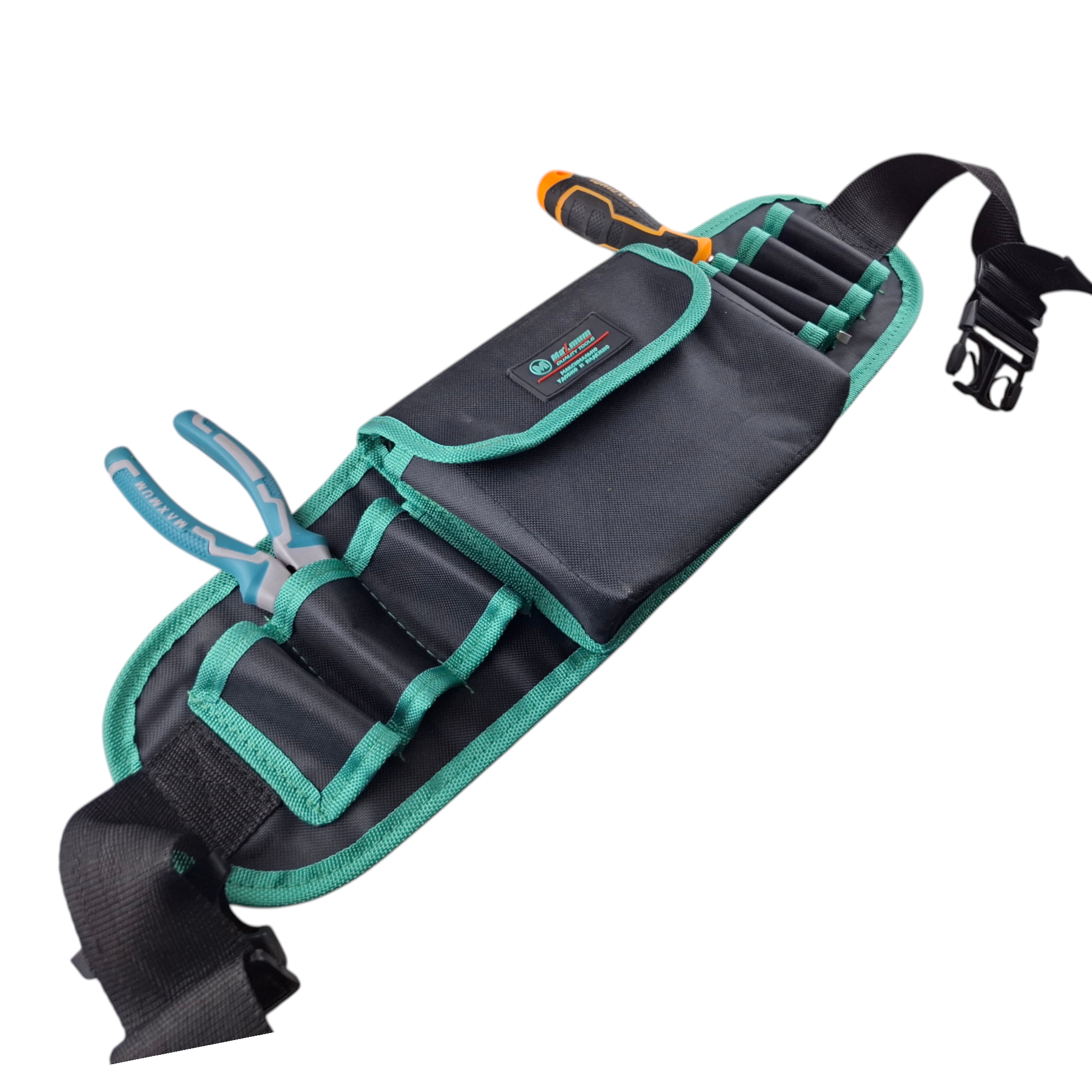 Сумка-пояс для инструментов с ремнем 130 см имеет 8 открытых отсеков и один большой карман на липучке. Пояс монтажника выполнен из прочного водоотталкивающего материала и имеет функциональную конструкцию, которая обеспечивает удобство и безопасность хранения инструмента.