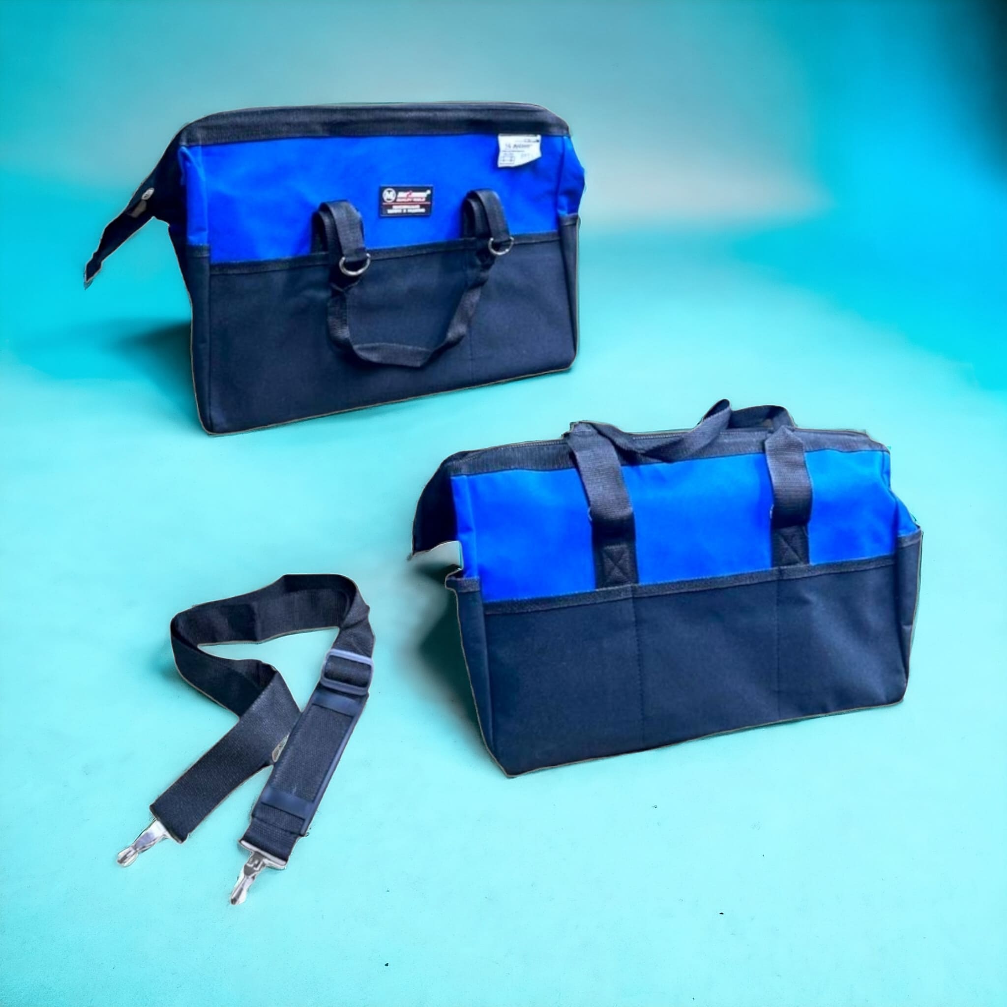Сумка-органайзер для инструментов от "MAXIMUM QUALITY TOOLS" имеет внешние и внутренние карманы для удобного размещения, хранения и транспортировки рабочих инструментов (до 55 кг). Дно и каркас жесткие. Сумка-органайзер выполнена из водоотталкивающего материала: укреплённая двойная материя полиэстер Oxford 600D + 600D c ПВХ пропиткой.