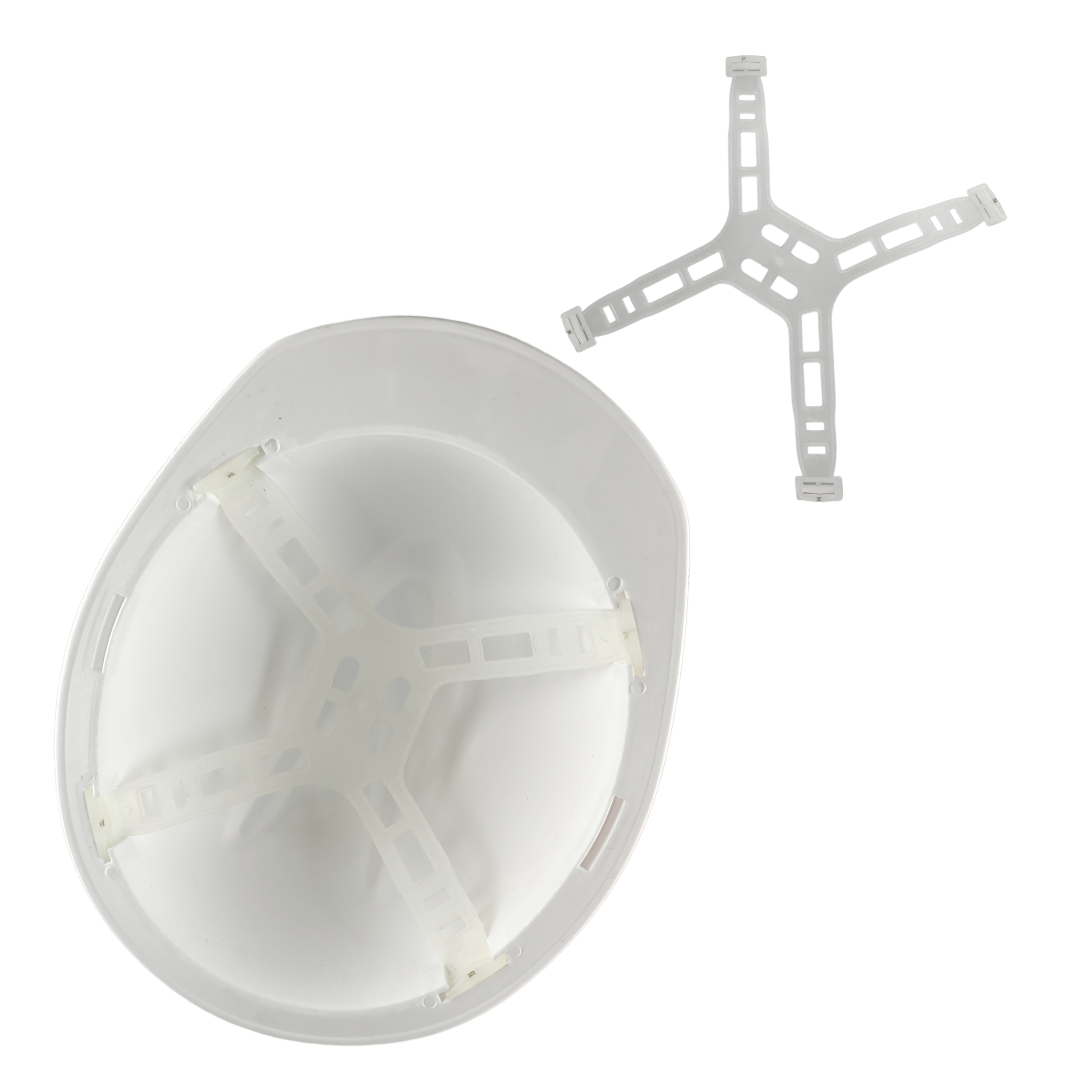 Легкая и прочная конструкция выполнена из полипропилена. Внутренняя оснастка крепится к корпусу в шести точках и состоит из амортизатора, изготовленного из тканевых лент и полиэтиленовой несущей ленты.