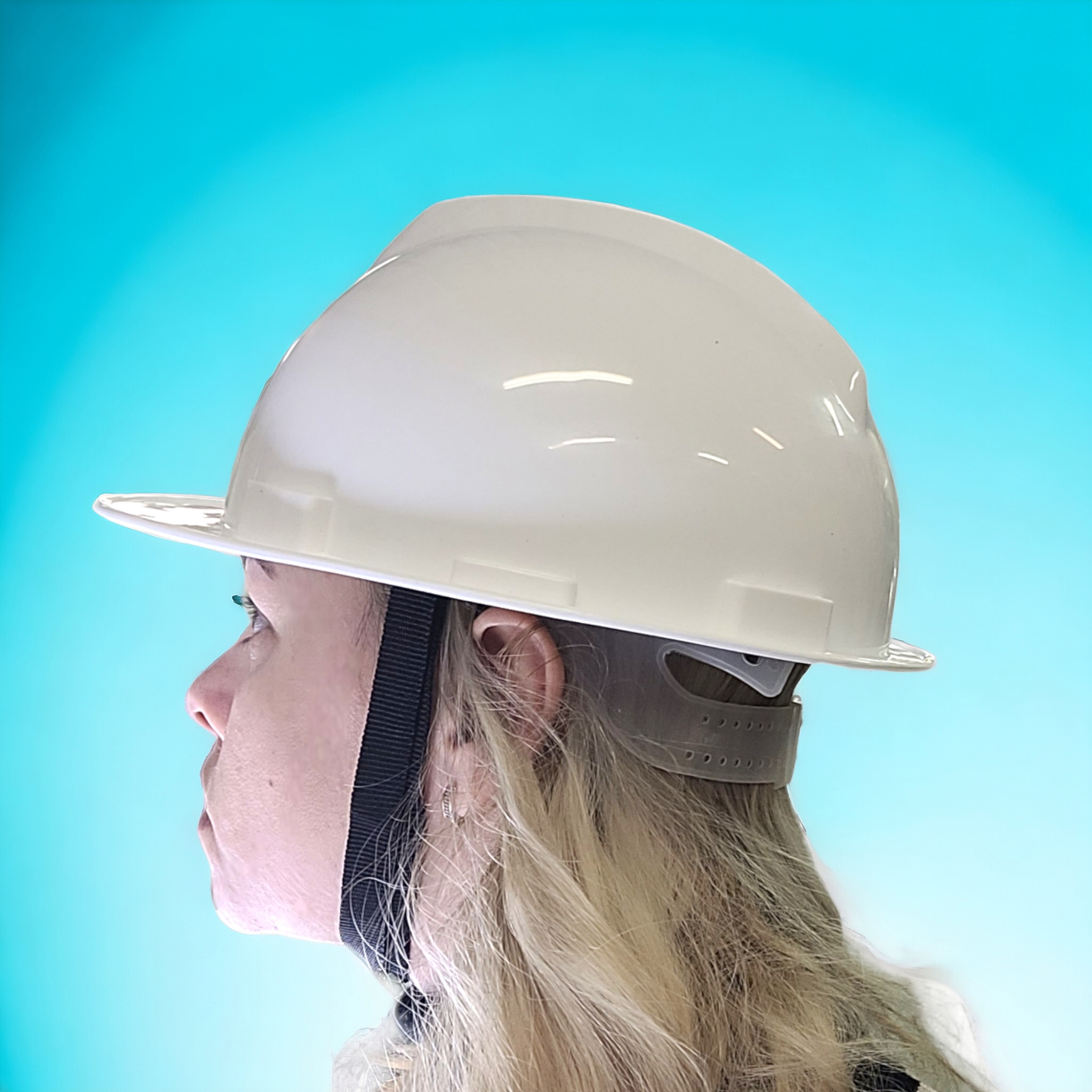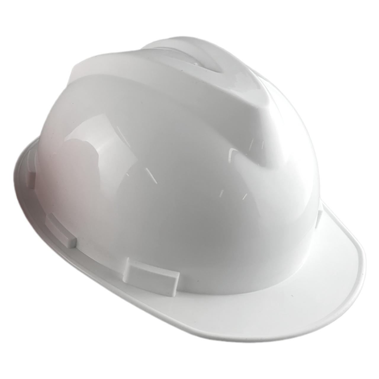 Каска белая строительная с козырьком создана для защиты головы от механических повреждений, влаги, брызг агрессивных жидкостей, искр и брызг расплавленного металла.