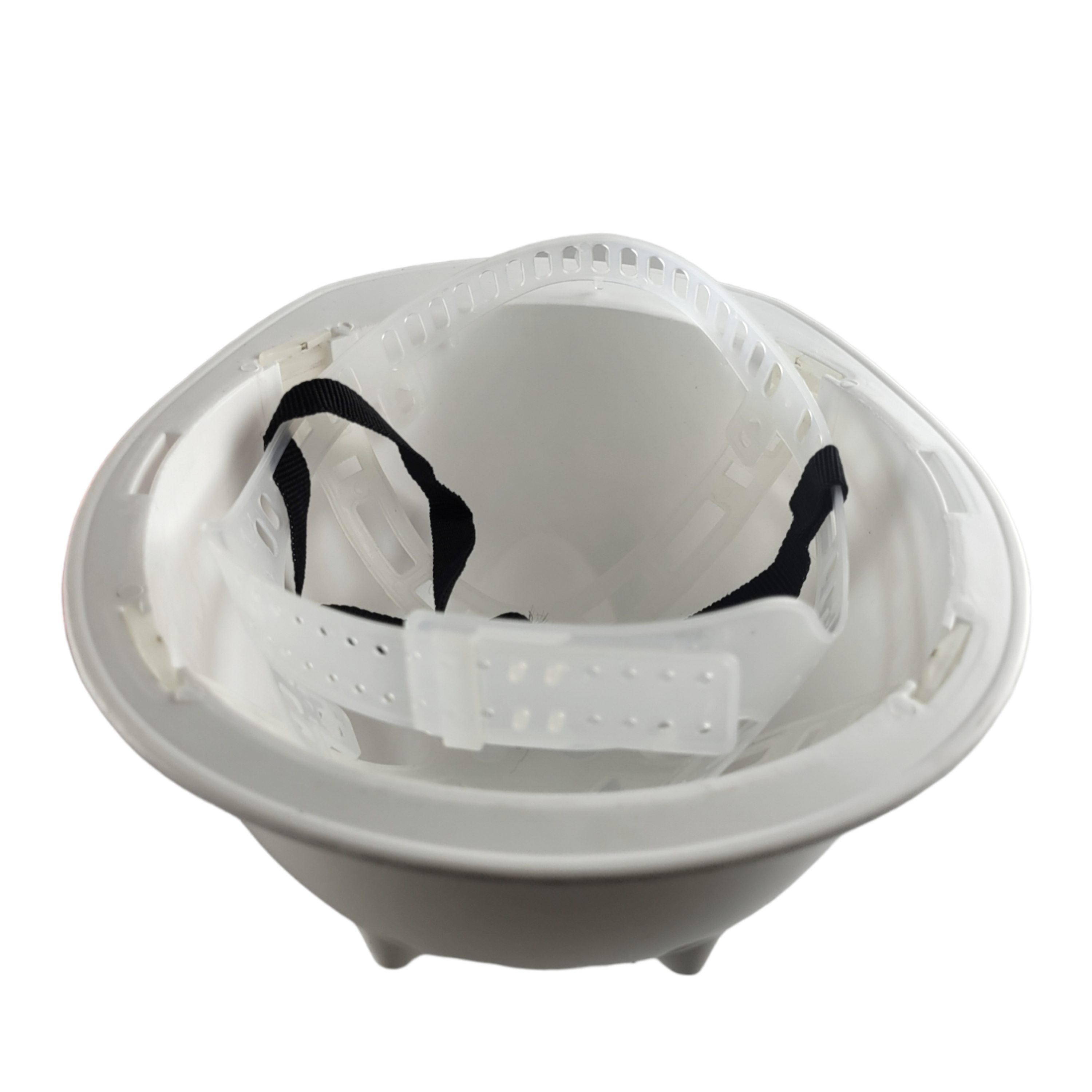 Строительная белая каска подходит для использования в температурном режиме от -30 до +50 градусов Цельсия.